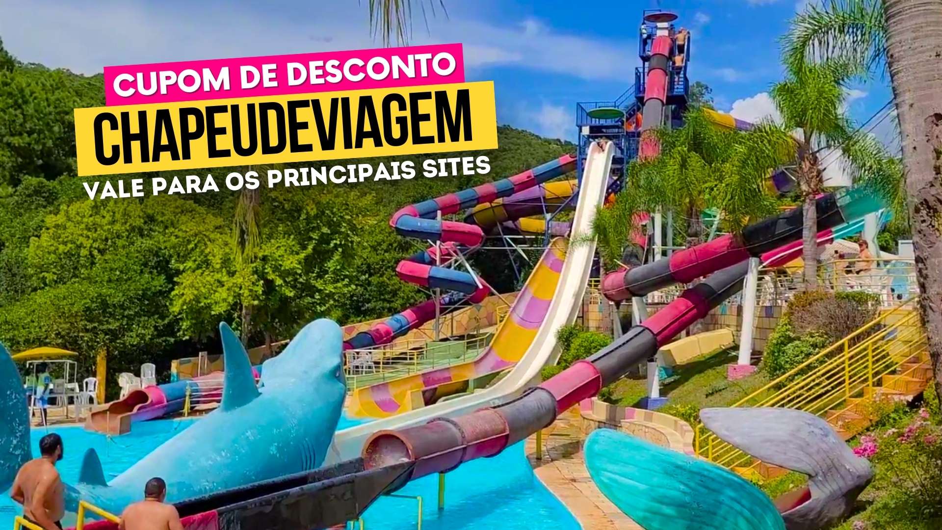O Cupom para o Ingresso Parque das Águas é o cupom CHAPEUDEVIAGEM: ele te dá brindes conforme você usa ele repetidas vezes, e te permite economizar até 15%.