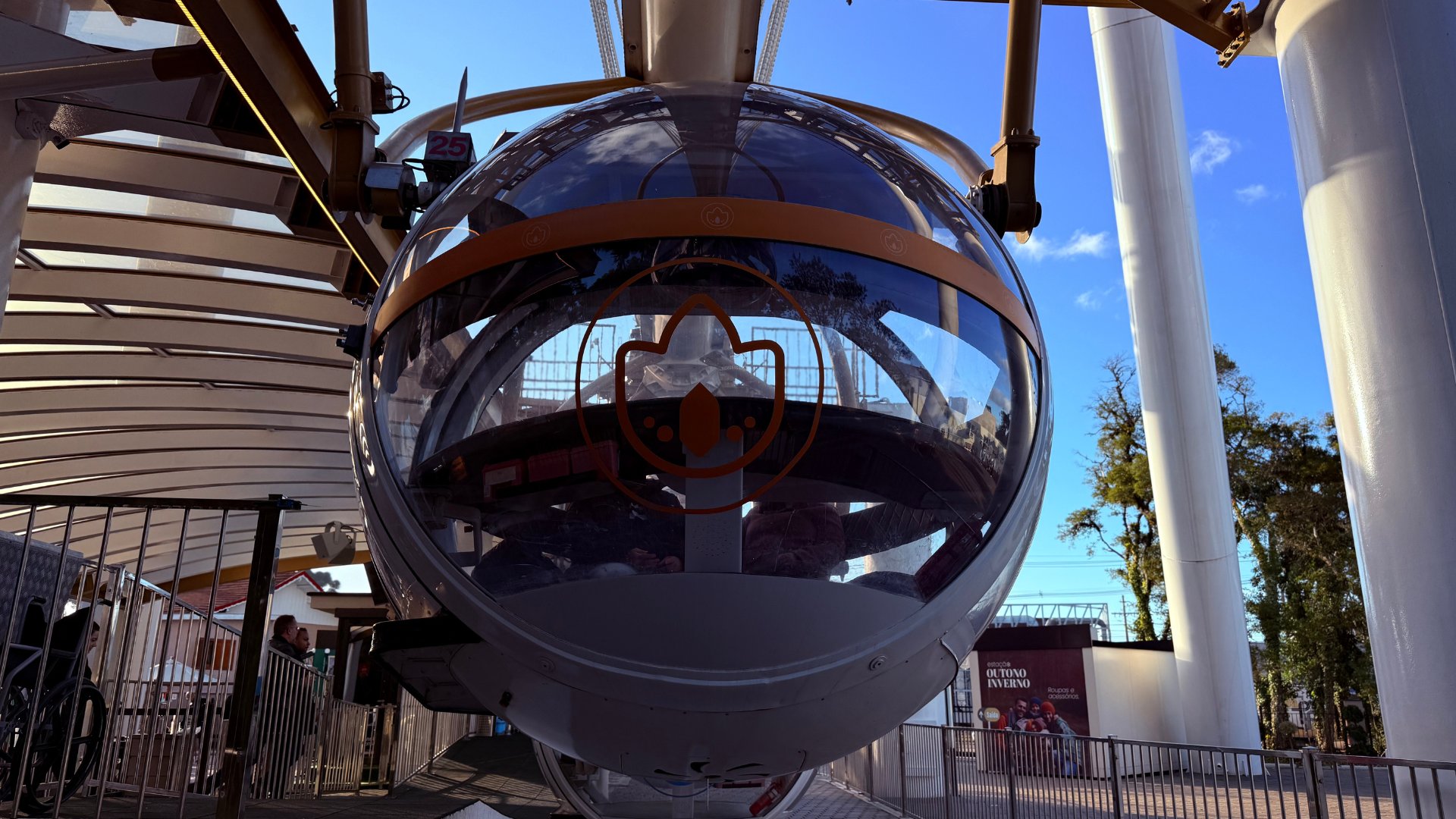 Dar uma volta completa de cerca de 20 a 25 minutos em uma das 30 cabines climatizadas, equipadas com ar-condicionado, aquecimento, vidros antiembaçantes e comunicação direta com a equipe de operação.