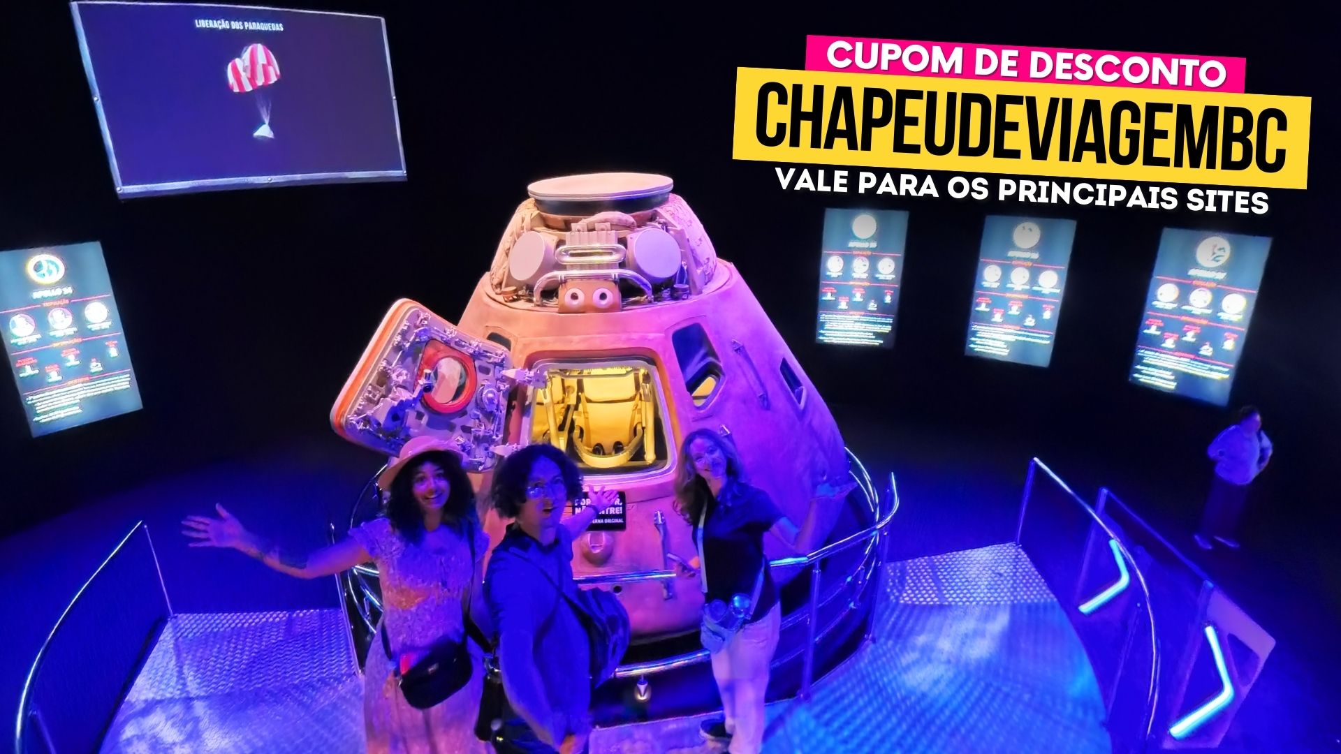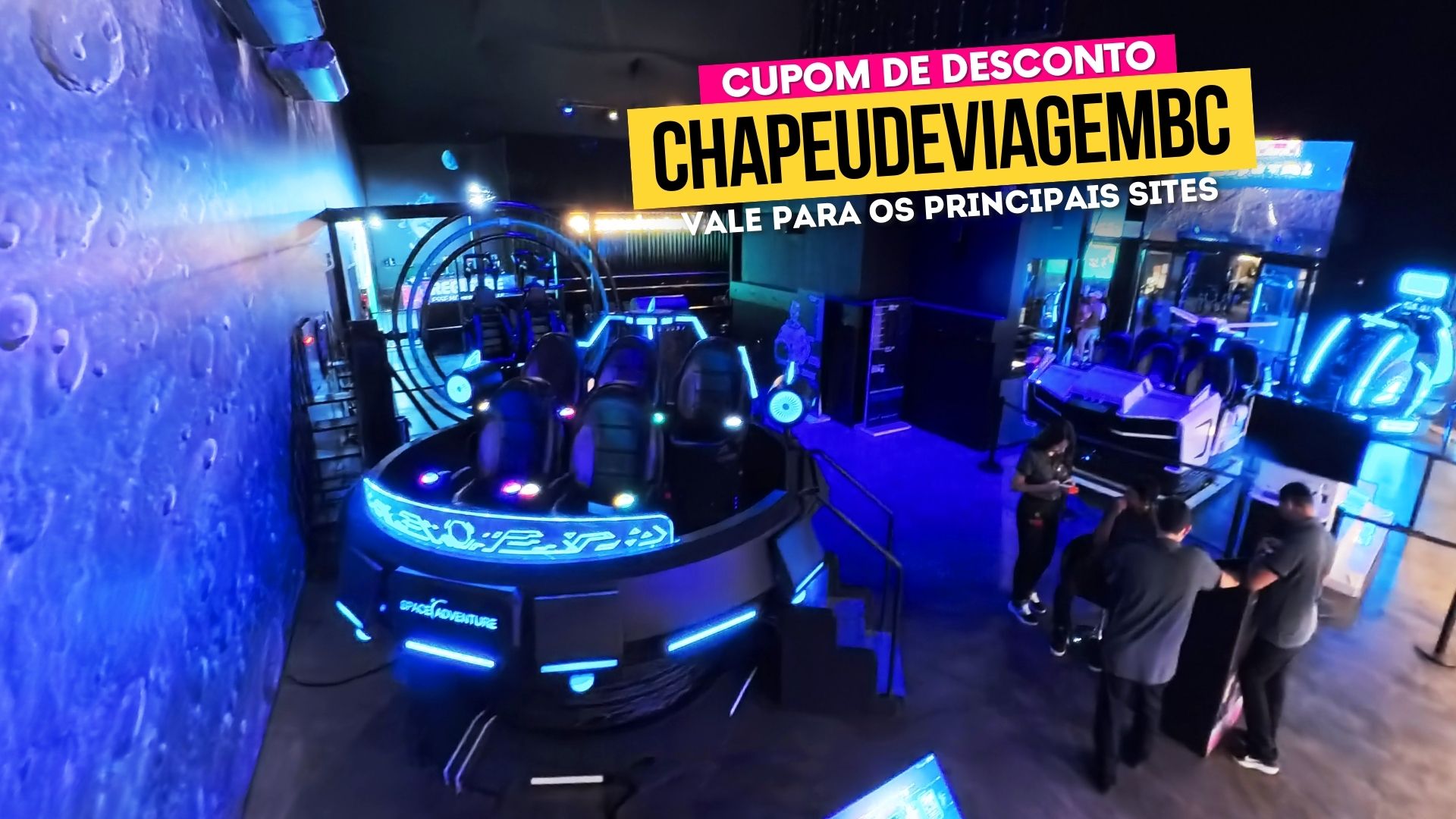 Use o cupom CHAPEUDEVIAGEM e economize até 15% na compra do seu Ingresso Space Adventure Balneário! Além do desconto, o uso frequente do cupom pode garantir brindes e benefícios exclusivos em futuras experiências turísticas.